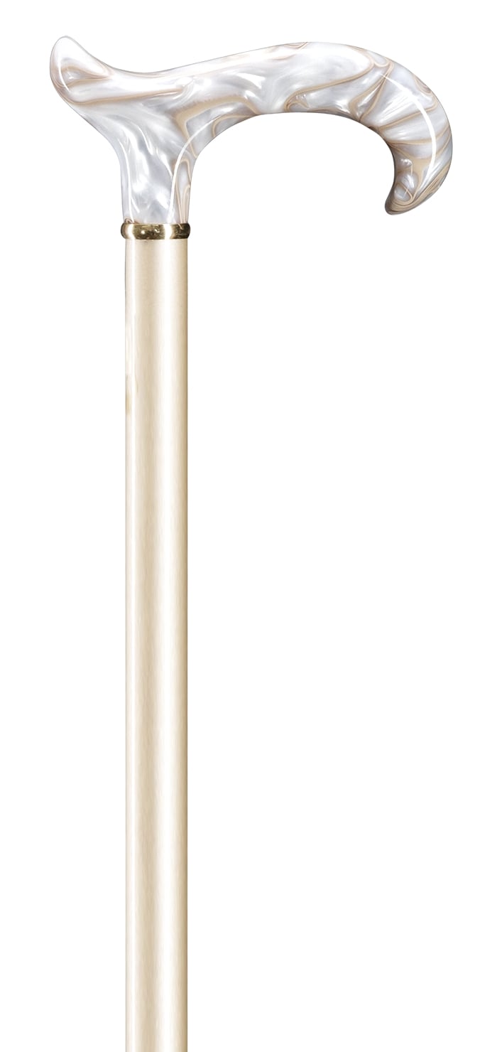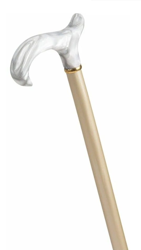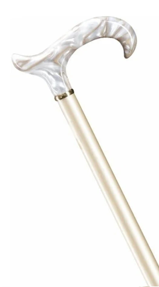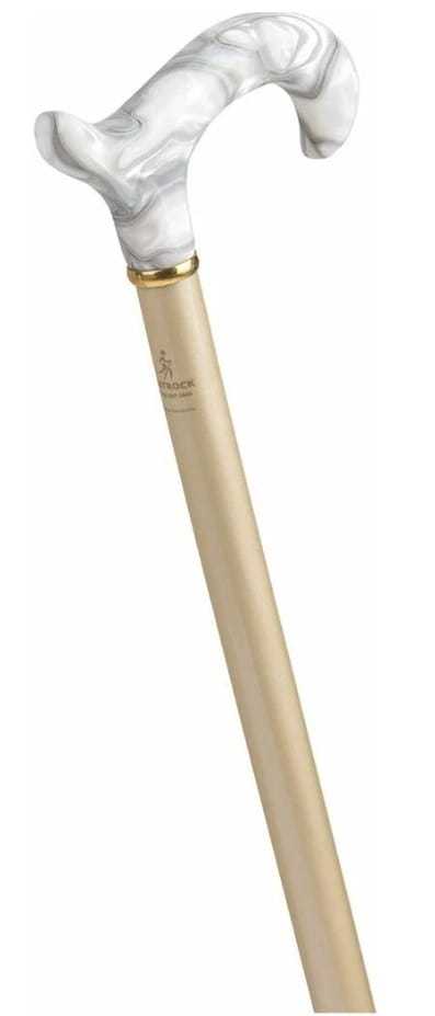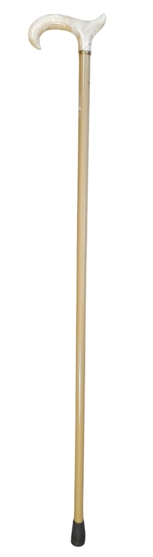 Ręcznie wykonana, smukła laska z rodzimego drewna bukowego, wyposażona w uchwyt typu Derby z odpornego na uderzenia i zarysowania akrylu. Każdy egzemplarz jest indywidualnie barwiony w metalicznych odcieniach i pokryty błyszczącym lakierem. Laska wykończona jest eleganckim pierścieniem z mosiądzu oraz trwałą, antypoślizgową końcówką gumową.