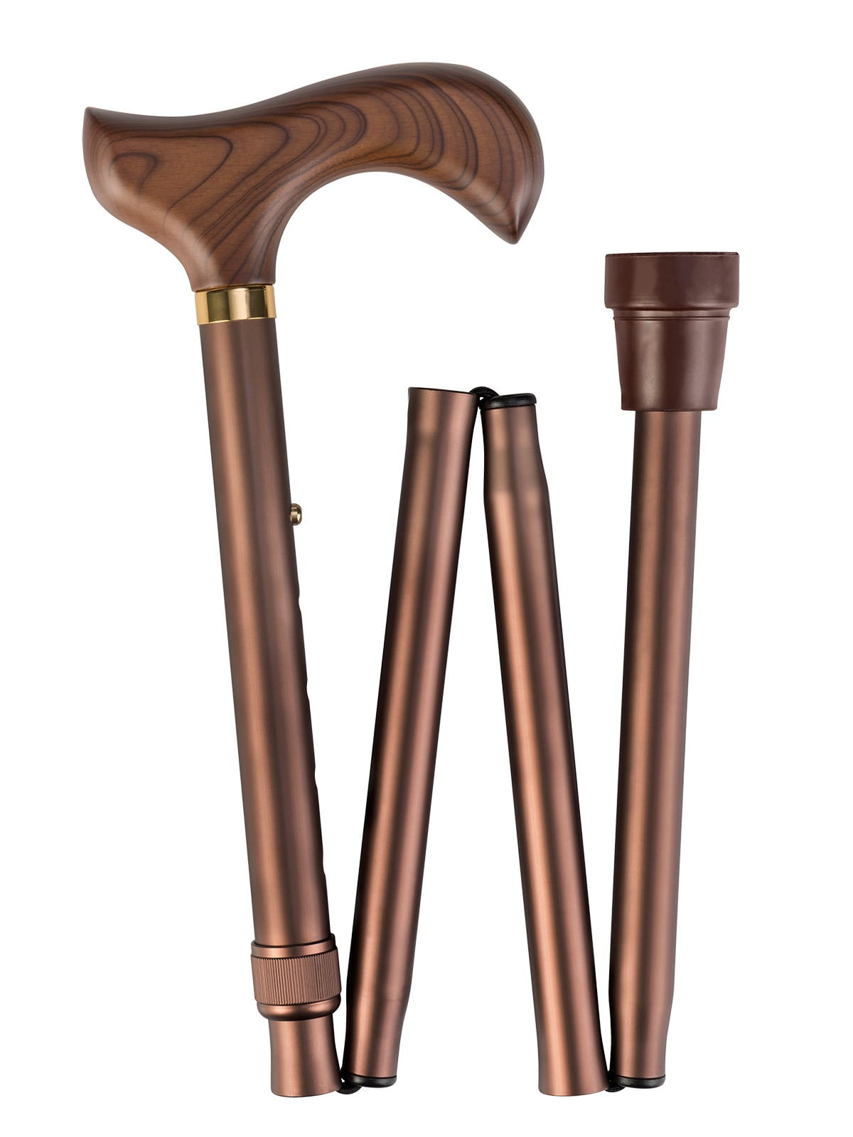 Laska składana metalowa Ossenberg z drewnianym uchwytem - brązowa