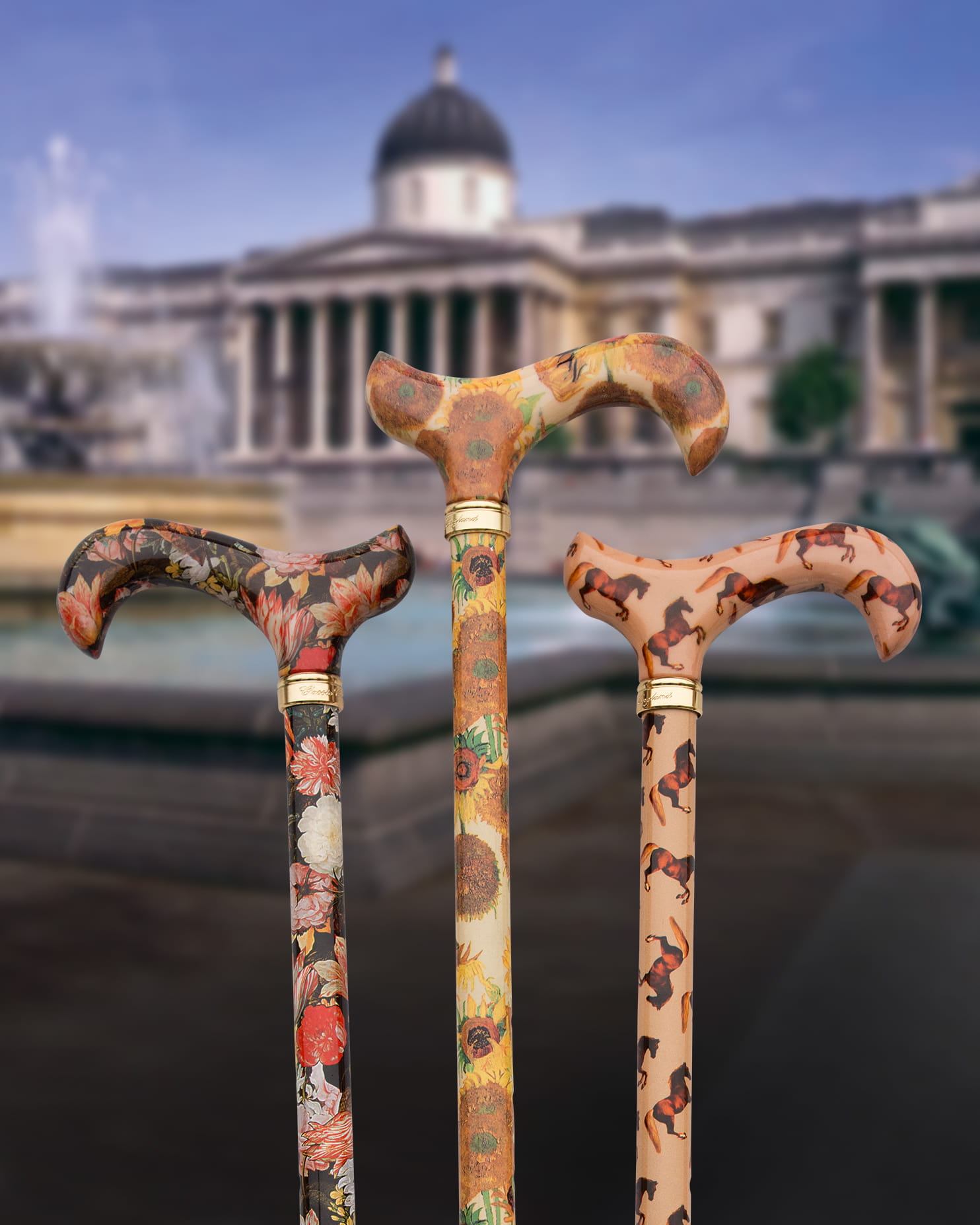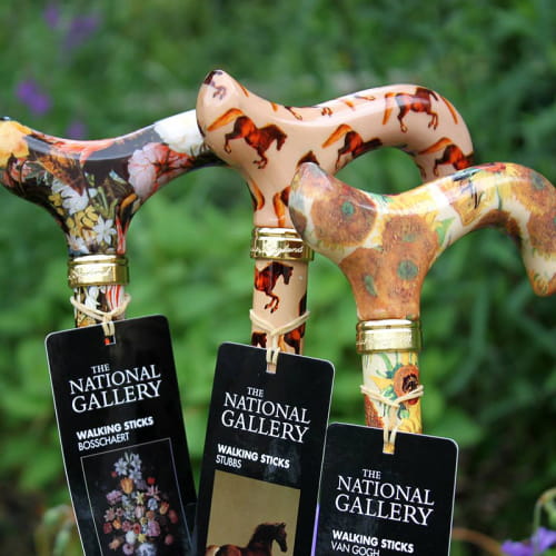 Ta regulowana laska derby, wyprodukowana przez Classic Canes na licencji Galerii Narodowej w Londynie, zawiera detale z „Martwej natury kwiatów w wazonie Wan-Li” Ambrosiusa Bosschaerta Starszego, 1573-1621. Jeden z najbardziej lubianych obrazów Galerii Narodowej, powstał w latach 1609-10.