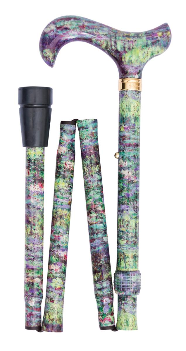 Ta składana laska typu derby, wyprodukowana przez Classic Canes na licencji Galerii Narodowej w Londynie, przedstawia bardzo lubiany obraz lilie wodnych autorstwa Claude'a Moneta z lat 1840–1926. Namalowany w 1899 roku „Staw z liliami wodnymi” jest jednym z najsłynniejszych dzieł Moneta. Laska składana jest z czterech części, ma regulowaną wysokość w zakresie od 82 do 92 cm (około 32–36 cali), dzięki czemu nadaje się dla użytkowników o różnym wzroście. Waga przedmiotu: 420g. Średnica okucia: 19mm.